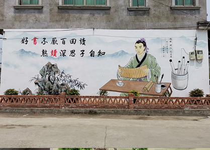 溫州市墨客墻繪藝術有限公司主要從事有個性有創意的家居裝飾墻繪、幼兒園卡通彩繪、KTV酒吧主題墻繪、3D立體墻繪、習哥彭姐文化大革命的城鄉文化宣傳墻繪等,當然還有我們獨歩武林的高墻墻繪藝術!畫高墻有時一個頭像就有兩米,不僅僅是大了型不好把握,一般習慣在陸地作戰的繪畫者往往上去后會讓你唱起一首歌:“三月里的小雨,淅瀝瀝瀝......瀝瀝……淅瀝瀝瀝下個不停……”就是戴上尿不濕,他們也會在上面演示帕金森。我們施工時下面觀看的人如少女初戀般心跳,欣賞的人似紂王品酒觀妲己跳舞一樣陶醉。連村中惡犬也為我們搖尾吶喊:“……墨客墻繪……神勇無畏!